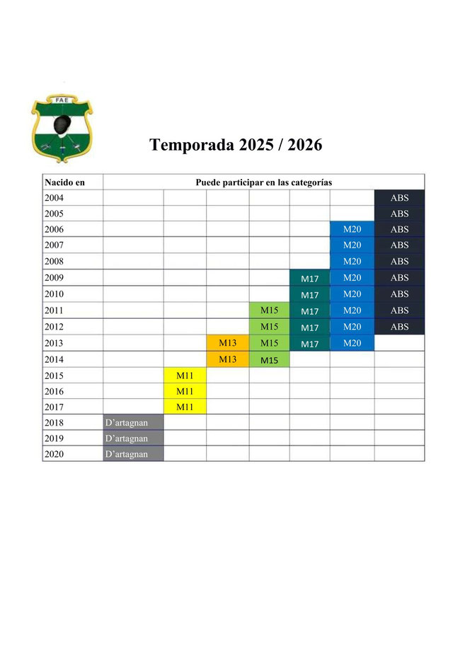 CUADRO DE EDADES TEMPORADA 2025 - 2026